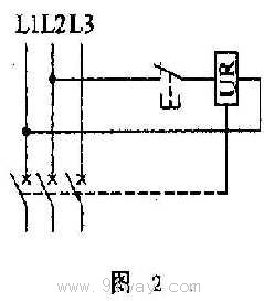 上述兩種脫扣裝置都是電壓型線圈,都能使MCB達到脫扣的目的,但兩者是有區別的。 UR是按長時間通電設計的,而ST是按瞬間通電設計的,這一點往往在選用時被疏忽,誤把ST當作UR使用,導致ST的燒毀。如果UR當作ST使用,理論上是可行的,但實際上是不經濟的。因為 UR是24h接入線路中的,終究要消耗一定的電功率,并且發出一定的熱量。如果要使UR兼有失壓和分勵脫扣作用,則在控制回路中應接人一常閉按鈕,如圖2所示,這點請務必注意。 |
