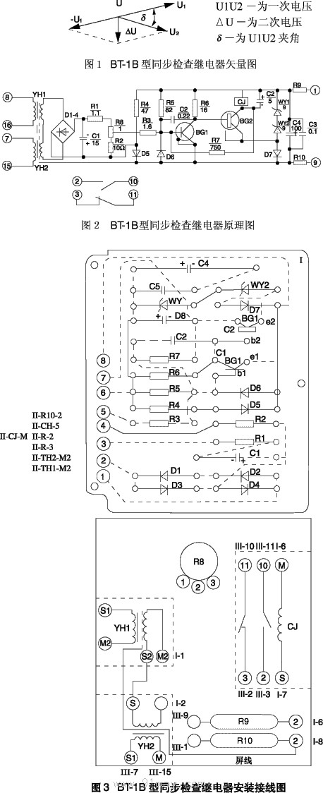 BT-1B型同步檢查繼電器用于兩端供電系統的自動重合閘線路中,作為有無電壓和同期的檢查元件。