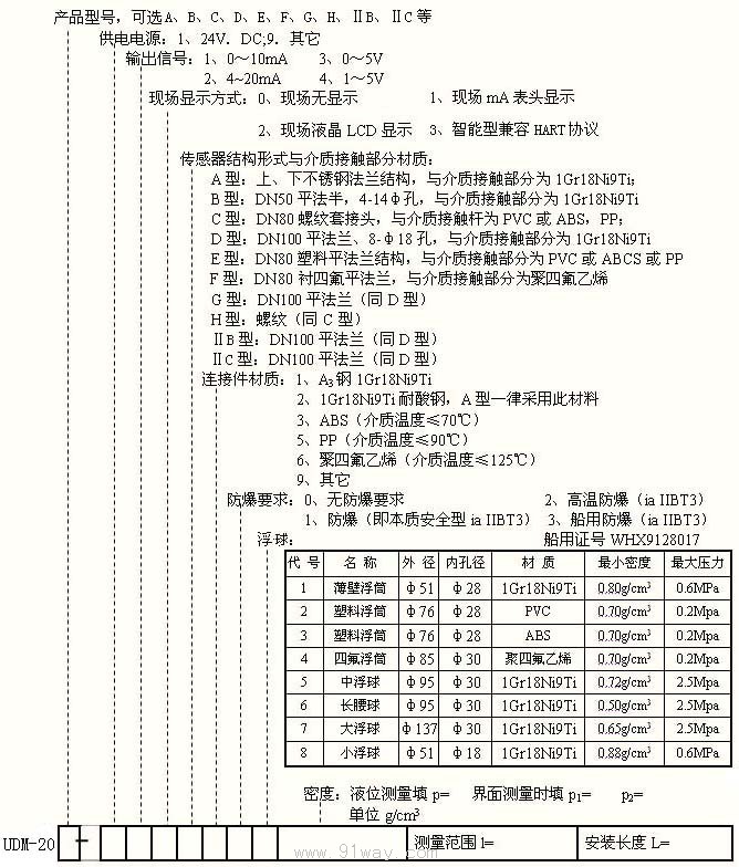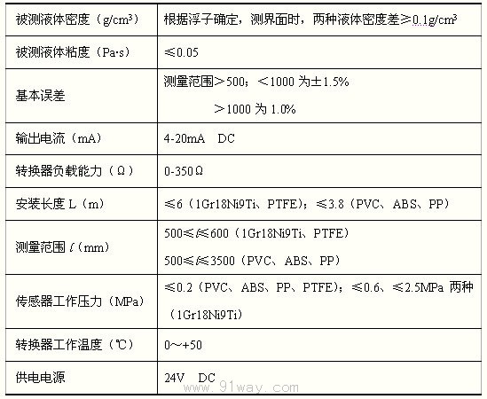 UDM-20系列浮球式液位變送器主要技術指標