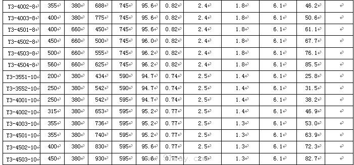 Y3系列低壓大功率電動機技術參數