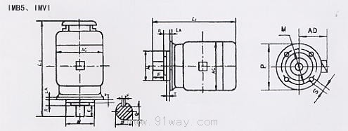 IM4203:機(jī)座不帶底腳、在非傳動(dòng)端的機(jī)座上有凸緣,安裝平面在傳動(dòng)端側(cè),軸伸帶錐度。