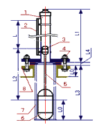 UHM-D(頂裝式)翻柱液位計亦可配合磁控開關組成頂裝式翻柱控制液位計;配合捆綁式變送器組成頂裝式翻柱遠傳液位計。 選用該型液位計儲罐安裝口的法蘭(預留孔)不小于DN80,建議您最好預留DN100的接口法蘭。