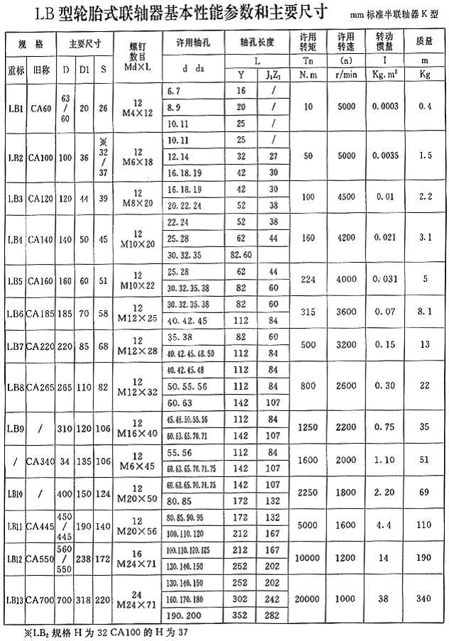 LB輪胎式聯(lián)軸器(JB/T10541-2005)