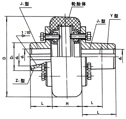 LLB型無骨架輪胎式聯(lián)軸器的基本尺寸和參數(shù)