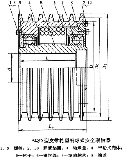 | 產品名稱: | AQD型帶皮帶輪鋼球式安全聯軸器 | |||||
