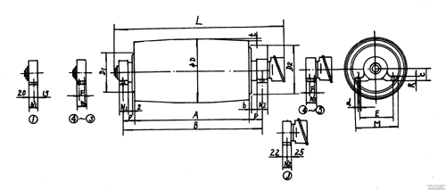 注:1.同一種機型號滾筒(滾筒直徑相同),外形安裝尺寸相同。外形尺寸與電機功率和所配減速機的大小無關。