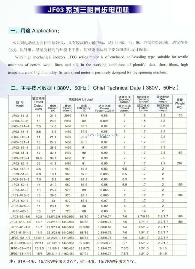 JFO3-61-4/6,15/7Kw;JFO3-61B-6,15Kw是專為紡織機械配套而設計的全封閉自扇冷鼠籠型三相異步電動機,使用方便。