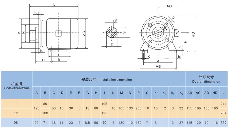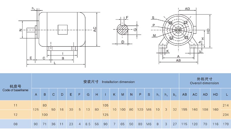 3、Y型:端蓋上有大凸緣,軸孔有密封圈,軸伸端有M螺孔。