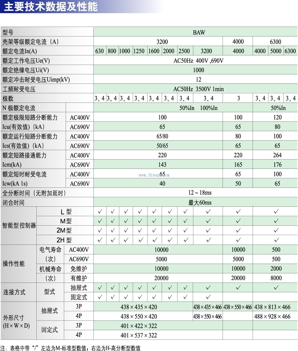 BAW智能型萬能式斷路器符合IEC 、GB標(biāo)準(zhǔn)、CCC認(rèn)證 人性化外形設(shè)計 高分?jǐn)唷⒘泔w弧滿足配電系統(tǒng)之各種需求 具備智能化通訊功能