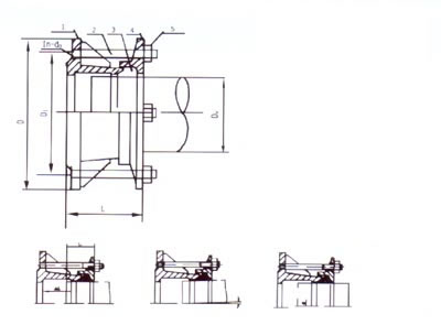 法蘭松套伸縮接頭安裝在管道上后,擰緊螺母彈性密封圈,法蘭松套伸縮接頭在螺母壓蓋的作用下依靠相互斜度,緊壓在管子外圈密封和連接作用。法蘭松套伸縮接頭在當(dāng)溫度變化時(shí)管子能在接頭中間自由的伸縮,當(dāng)?shù)鼗鲁,管子能偏斜,并確保密封無(wú)滲漏,從而法蘭松套伸縮接頭起到自動(dòng)補(bǔ)償之目的