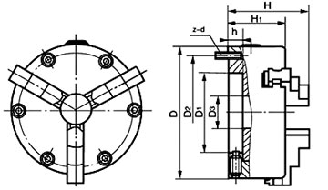 K31可調三爪自定心卡盤 短圓柱連接形式。具有可調結構,能滿足精密加工的需要。