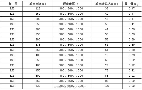 RS3系列方管形快速熔斷體主要技術(shù)參數(shù)