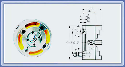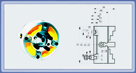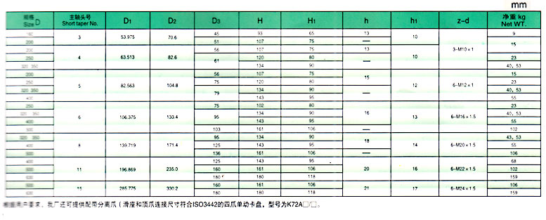 K72□/□四爪短錐卡盤 K72□/□系列單動卡盤系短錐連接式,可直接與機床主軸連接,本系列卡盤與主軸連接型式分為A2、C、D三種。