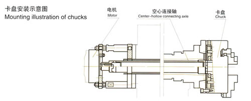 該產品驅動電機通過空心連接軸上的端齒傳遞轉動扭矩,經過少齒差行星齒傳動的減速機構來撥動盤絲。驅動卡爪同步移動,實現自動定心和夾緊工件。