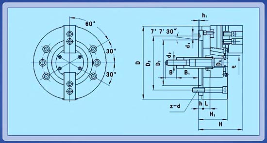 KT54T二爪楔式高速動(dòng)力卡盤與機(jī)床主軸直接連接,剛性好,精度高