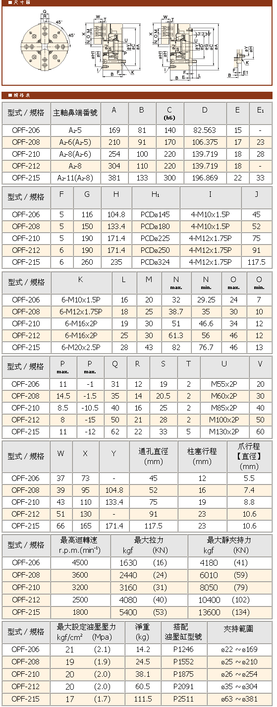 OPF四爪高速中空油壓夾頭