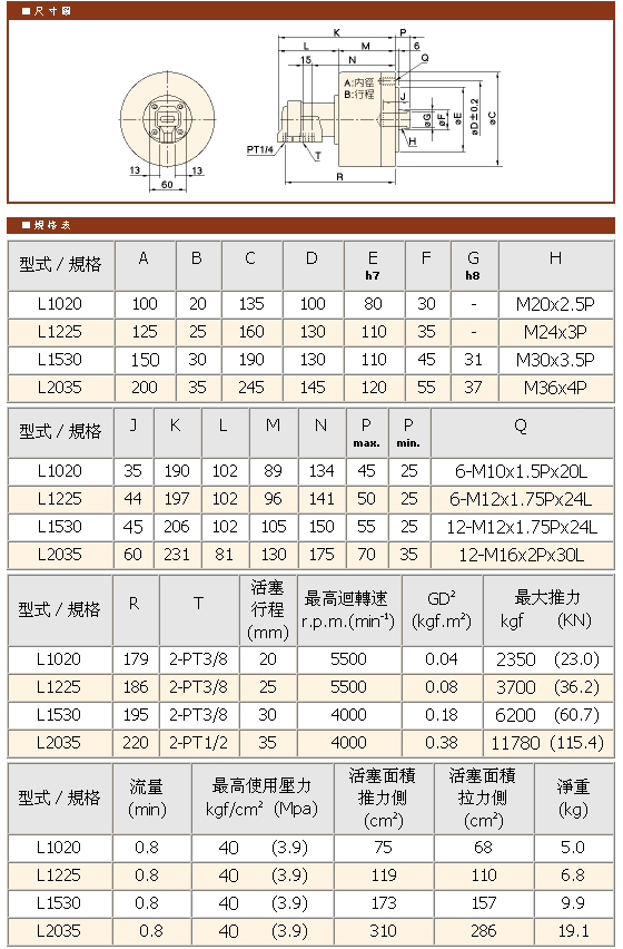 | 產品名稱: | L型中實油壓回轉缸 | |||||