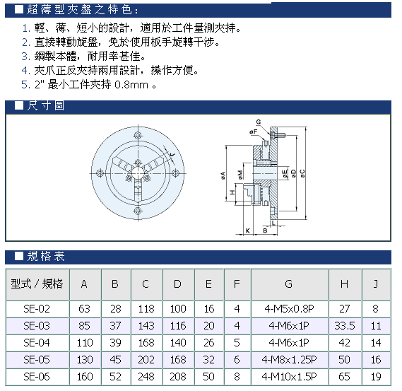 SE型超薄型夾盤