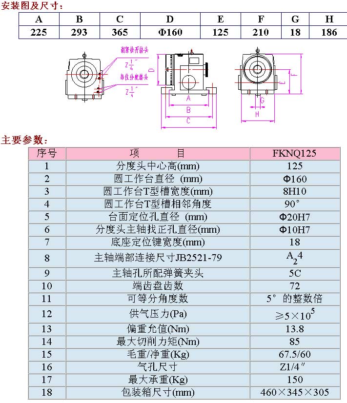 | 產品名稱: | FKNQ125系列數控氣動等分分度頭 | |||||