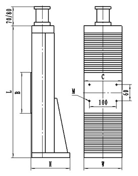 | 有效行程mm | 螺距mm | 承受載荷kg | 定位精度 | 重復定位精度 | 運行平行度 | 運行垂直度 | L | W | H | C | B | M | ||