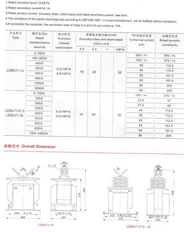 | LZZBJ71-12 | 5~100/5 | 10 | 15 | 15 | 20 | 25 | 10P15 | 200Iln | 500Iln |