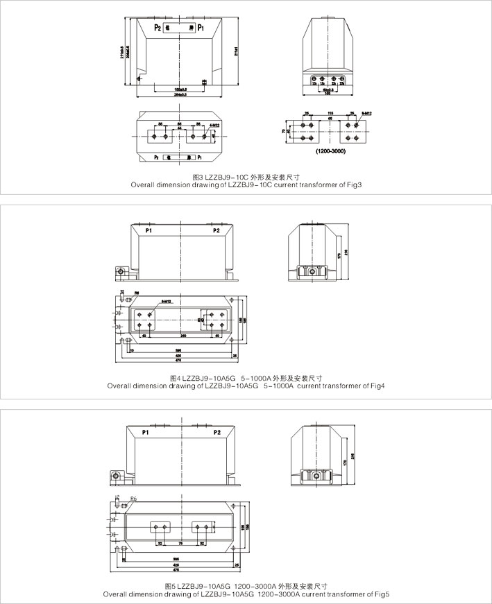 LZZBJ9-10A5G電流互感器外形及安裝尺寸