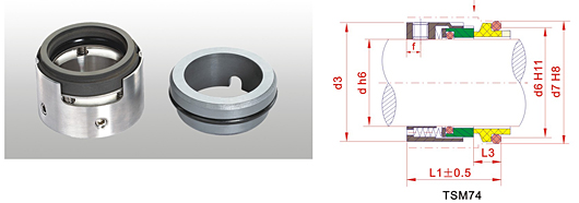 結構特點:單端面,任意旋向,符合EN12756(DIN24960)標準,推環由傳動搭子卡住,防止彈簧脫落,靜環可限位,彈簧行程受限制,避免碳環過度磨損。