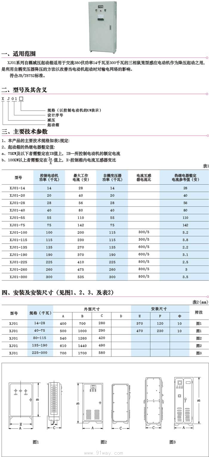 XJ01系列自耦減壓起動箱適用于交流380v,功率至300kw的三相鼠籠感應(yīng)電動機作為降壓起動之用,系利用自耦變壓器降壓的方法以改善當(dāng)電動機起動時對輸電網(wǎng)絡(luò)的影響。