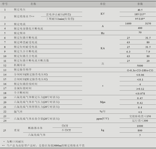 LW36-40.5高架型戶外六氟化硫斷路器(不銹鋼外殼)主要技術參數