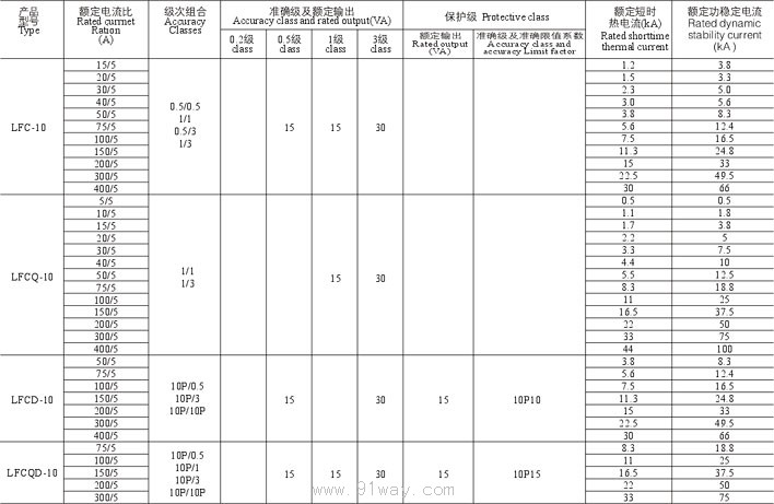 LFC,LFCQ(D)-10 電流互感器技術參數