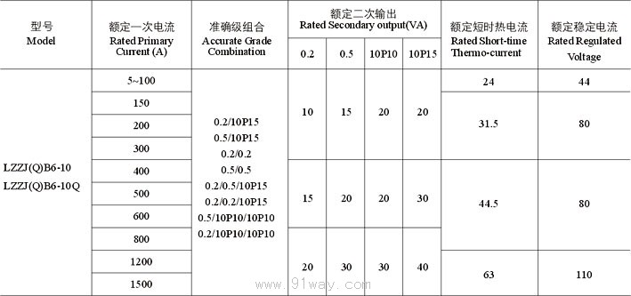 LZZJ(Q)B6-10(Q)電流互感器技術(shù)參數(shù)