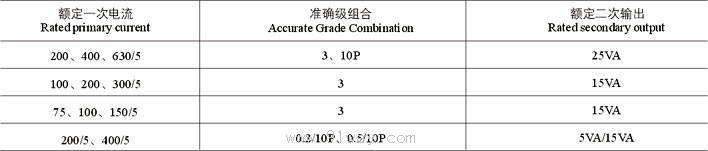 額定一次電流及相應的準確級次組合,額定準輸出見表