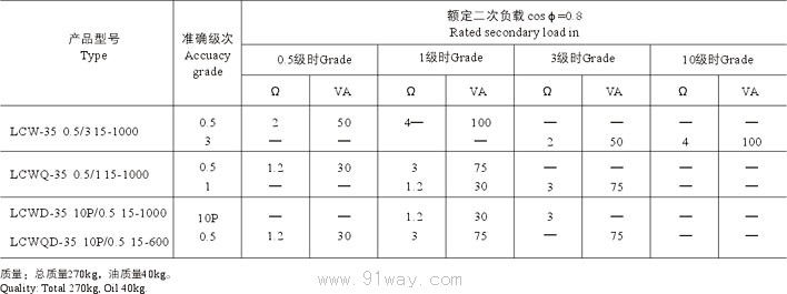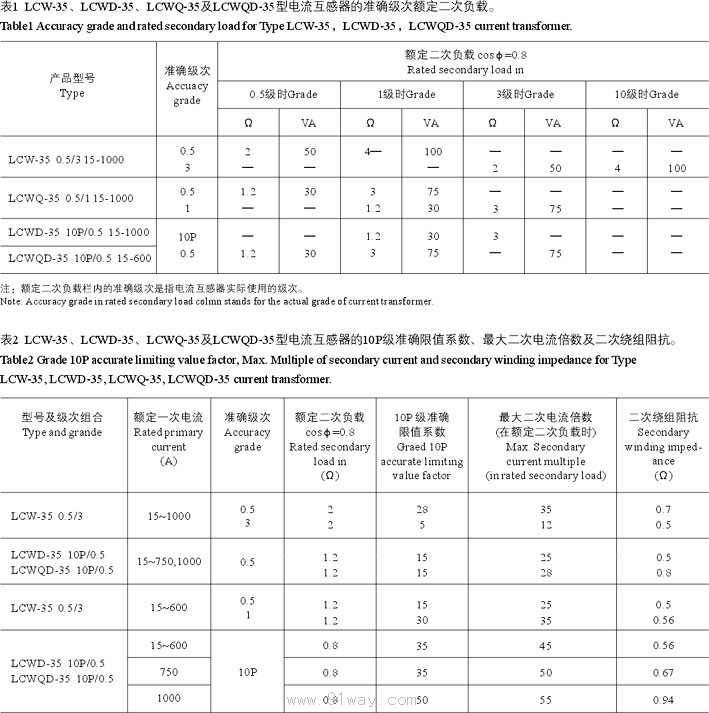 | LCW-35 | 15~1000/5 | 0.2/3 0.5/3 |