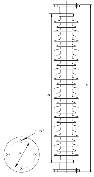 結構 高度H (mm) | 絕緣 距離 h (mm) | 最小公稱 爬電距離 (mm) | 雷電沖擊 耐受電壓 峰值(KV) | 工頻濕耐受電壓 有效值 (KV) |
