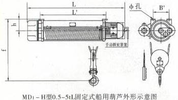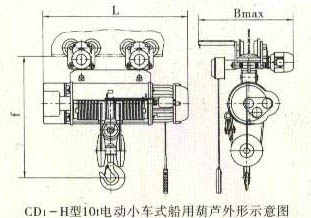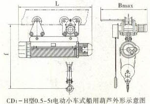CD1-H、HD1-H型船用葫蘆 CD1-H、HD1-H型船用電動葫蘆是經中國船舶檢驗局認可的鋼絲繩電動葫蘆,能在空氣相對濕度≤95%、有凝霧、油霧、霉菌、振動、長期橫傾、縱傾場所正常工作,是工礦企業及船舶中必備的起重設備。