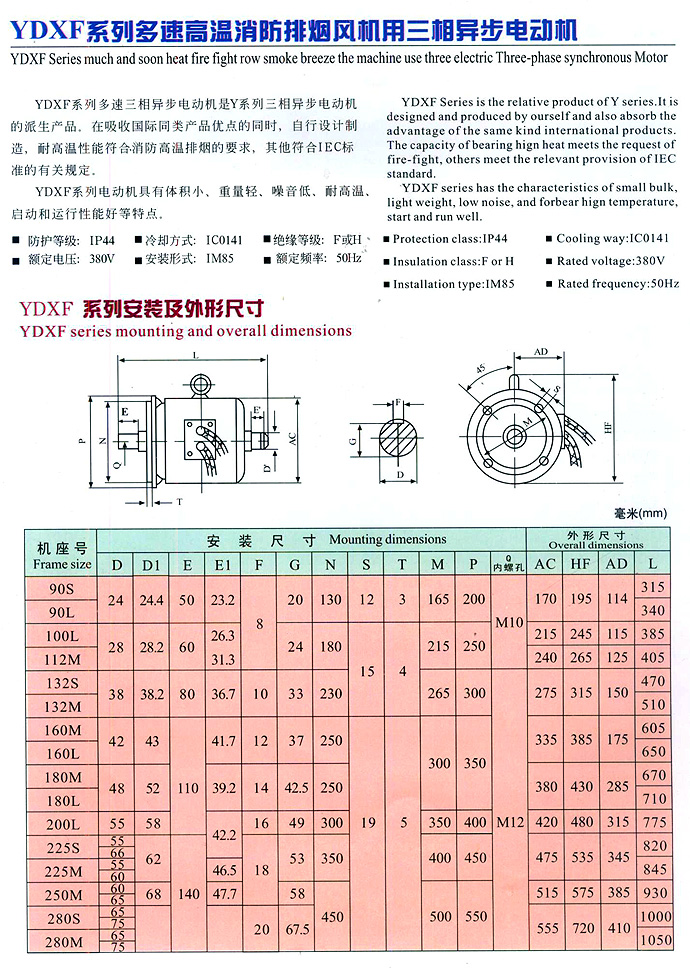 YDXF系列多速高溫消防排煙風機用異步電動機