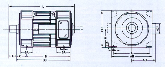 | 型號 | 主要尺寸 | 底腳尺寸 | 軸伸 尺寸 |