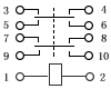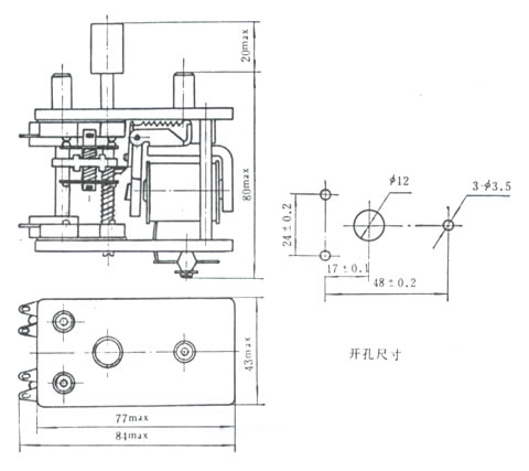 該繼電器的特點是機構堅固,耐振性強和交直流兩用。接觸系統有4付觸點(3-4,5-6,7—8,9-10)。當按下按鈕時,銜鐵上的齒將動觸點軸上的圓盤鎖住,使觸點3-4,7-8閉合,觸點5-6,9-10斷開。當繼電器銜鐵吸合時,源盤脫開,動觸點軸迅速復位,使觸點5-6,9-10閉合,觸點3-4,7-8斷開。若要重復使用時,必須再按下按鈕,使之能重復上述動作。
