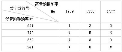 雙音頻號(hào)盤(pán)頻率見(jiàn)表3