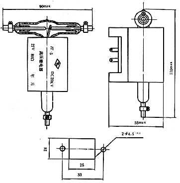 5.JT-5型真空高壓繼電器外形尺寸及接線圖