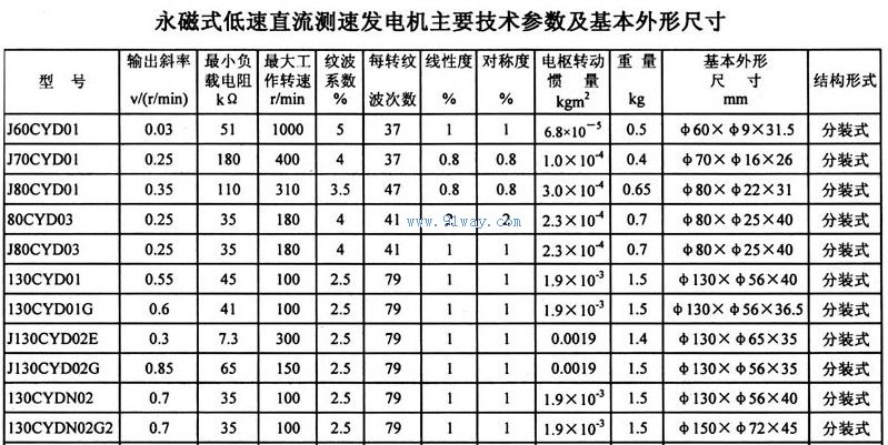 130CYD01,130CYD01G,130CYD02,130CYD0N2G2,130CYDN02永磁式低速直流測速發電機
