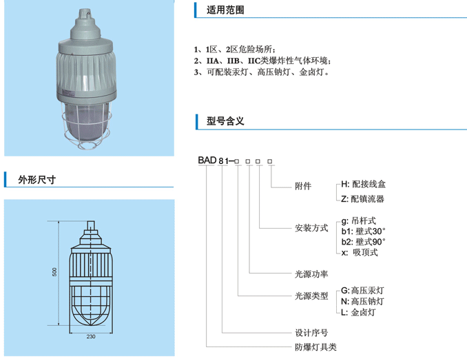 BAD81系列隔爆型一體化防爆燈(II C)
