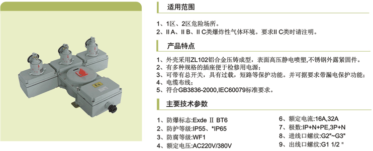 | 產(chǎn)品名稱(chēng): | BXX52系列防爆檢修電源插座箱(ⅡB、ⅡC) | |||||