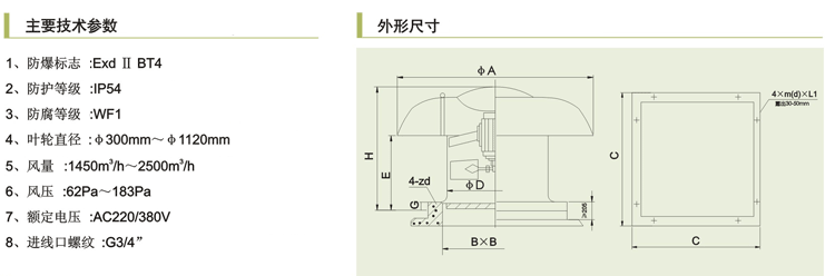 BWT系列防爆軸流屋頂風機(ⅡB)