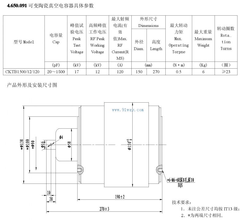 | 產品名稱: | CKTB1500/10(12)/120可變真空電容器 | |||||