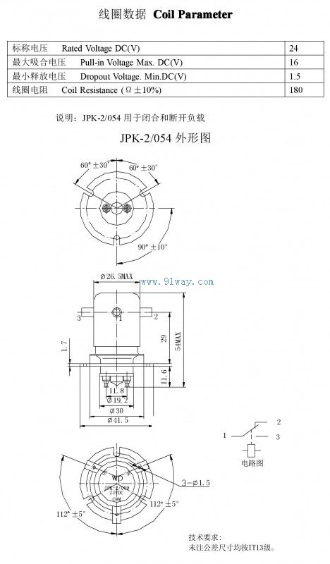 JPK-2/054真空繼電器線圈數(shù)據(jù) Coil Parameter