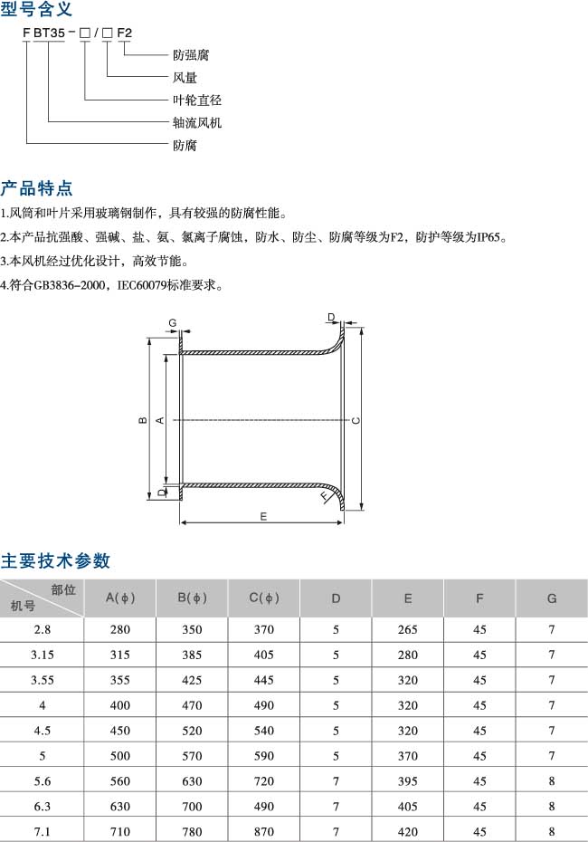 | 產品名稱: | FBT35系列防腐軸流風機 | |||||