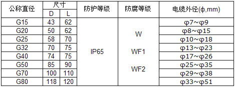 夾緊電纜,以防拔脫.外管螺紋接頭與螺紋壓帽之間設一密封膠圈,該密封膠圈小頭設有三個金屬爪,金屬爪隨膠圈向中心收縮,起到夾
