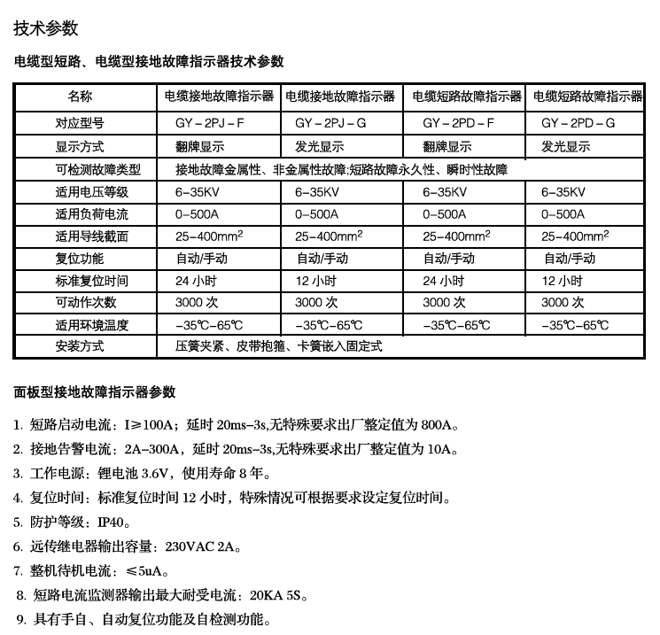 GY-2PJ,GY-2PD(電纜)接地短路故障指示器