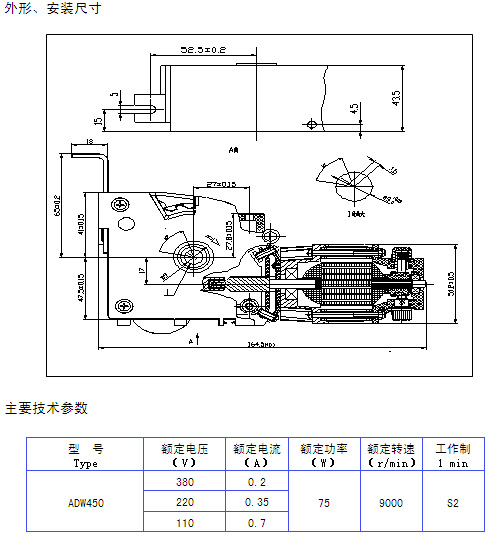 ADW450電動傳動操作機構電機技術參數: ADW450電動機傳動操作機構 主要配套(DW450)智能型萬能式斷路器